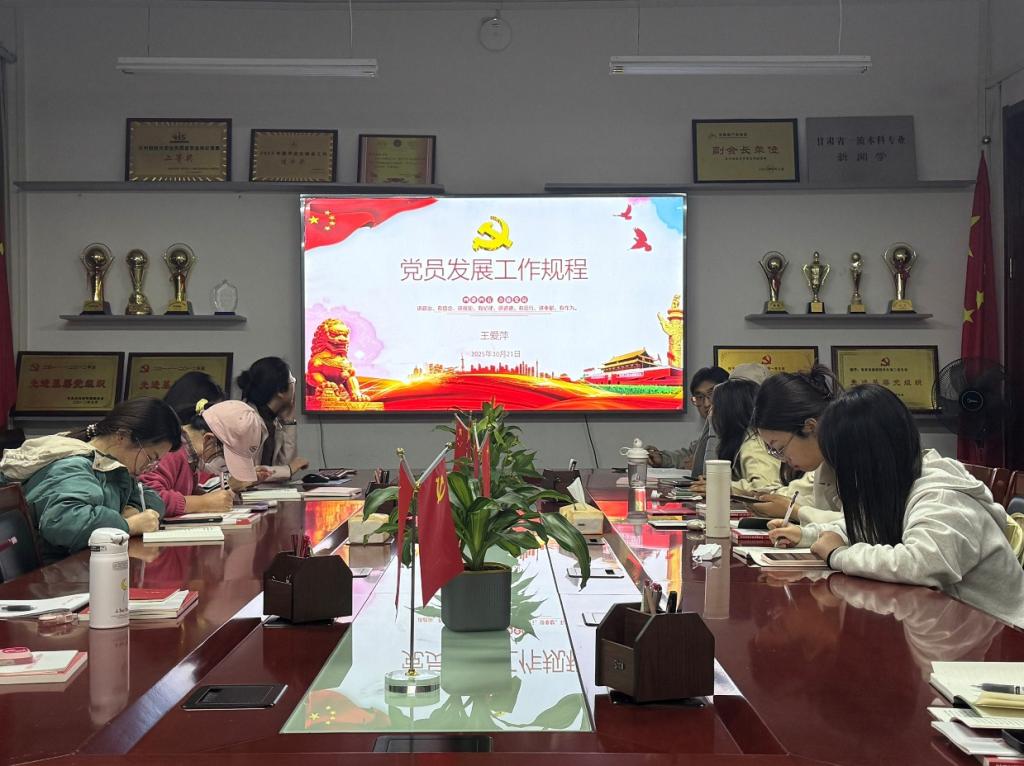 本次培训以《党员发展工作规程》为核心主题,王爱萍老师围绕党员发展“申请——培养——考察——审批”全流程关键环节,结合实际案例进行了细致拆解:从入党申请书的规范撰写,到培养考察期的表现要求,再到政审、预审等环节的核心要点,逐一明确标准与注意事项。同时,她着重强调了党员发展中“讲政治、有信念,讲规矩、有纪律,讲道德、有品行,讲奉献、有作为”的基本要求,叮嘱发展对象们以党员标准从严自我约束,助力学院党员发展工作依规有序推进。