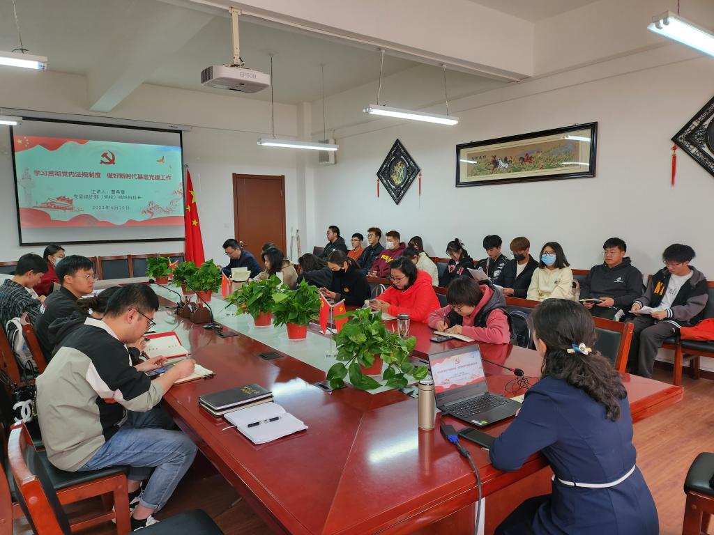 4月20日下午,我院邀请学校党委组织部组织科科长曹希霞,在致远楼10号会议室为我院党务工作者能力提升培训班学员作题为“学习贯彻党内法规制度,做好新时代基层党建工作”的辅导报告。学院各党支部书记、支部委员及学生党建工委学生干部参加了培训,培训会由组织员范丹妮主持。