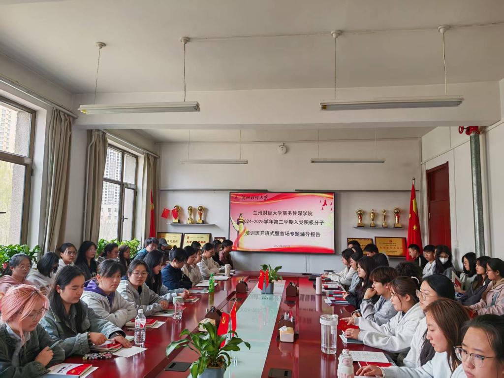 4月1日,商务传媒学院2024—2025学年第二学期入党积极分子培训开班仪式暨首场辅导报告在东岗校区西行政楼410会议室举行。党委书记蔺振玲出席开班仪式并作辅导报告,76名入党积极分子参加培训。会议由专职辅导员李潇主持。