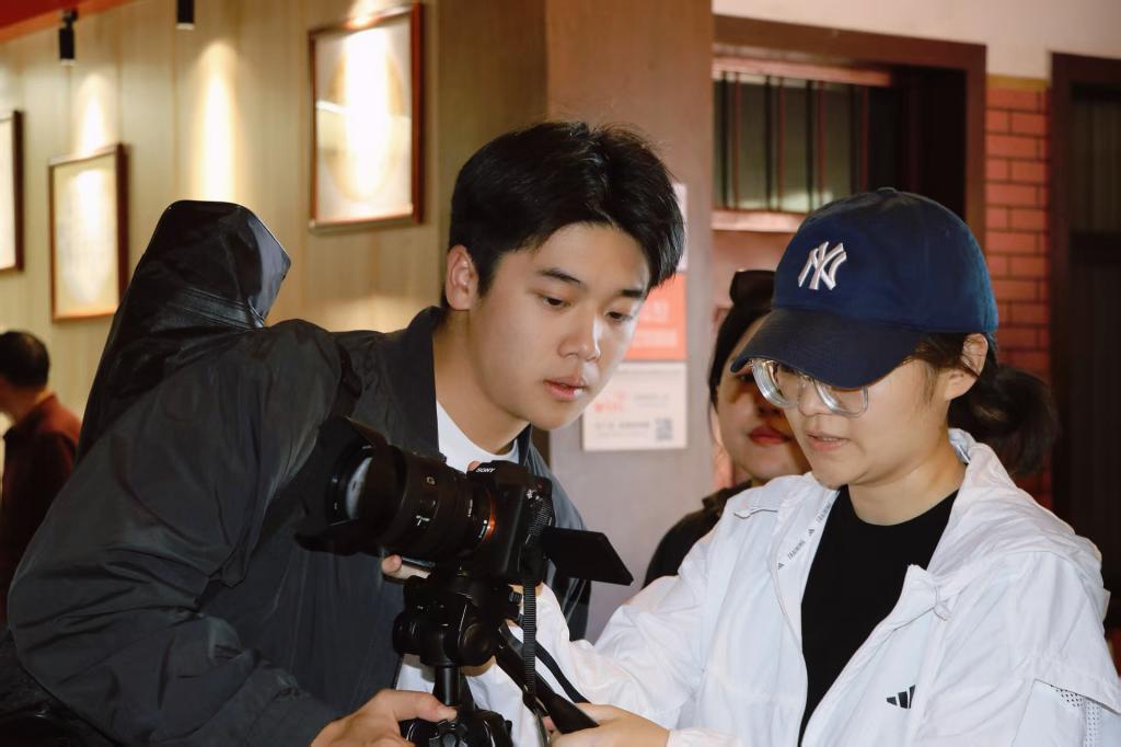 在武威市博物馆,摄制团队如同步入了一条时光隧道。从新石器时代的彩陶到汉代的木雕、仪礼简,再到唐代的丝绸制品,每一件文物都是讲好凉州故事的关键元素。同学们在指导老师的带领下,精心布光,调整机位,学习了如何用特写、推拉等镜头语言去表现文物的细腻质感与历史沧桑,将静态的展品拍摄出了动态的故事感。