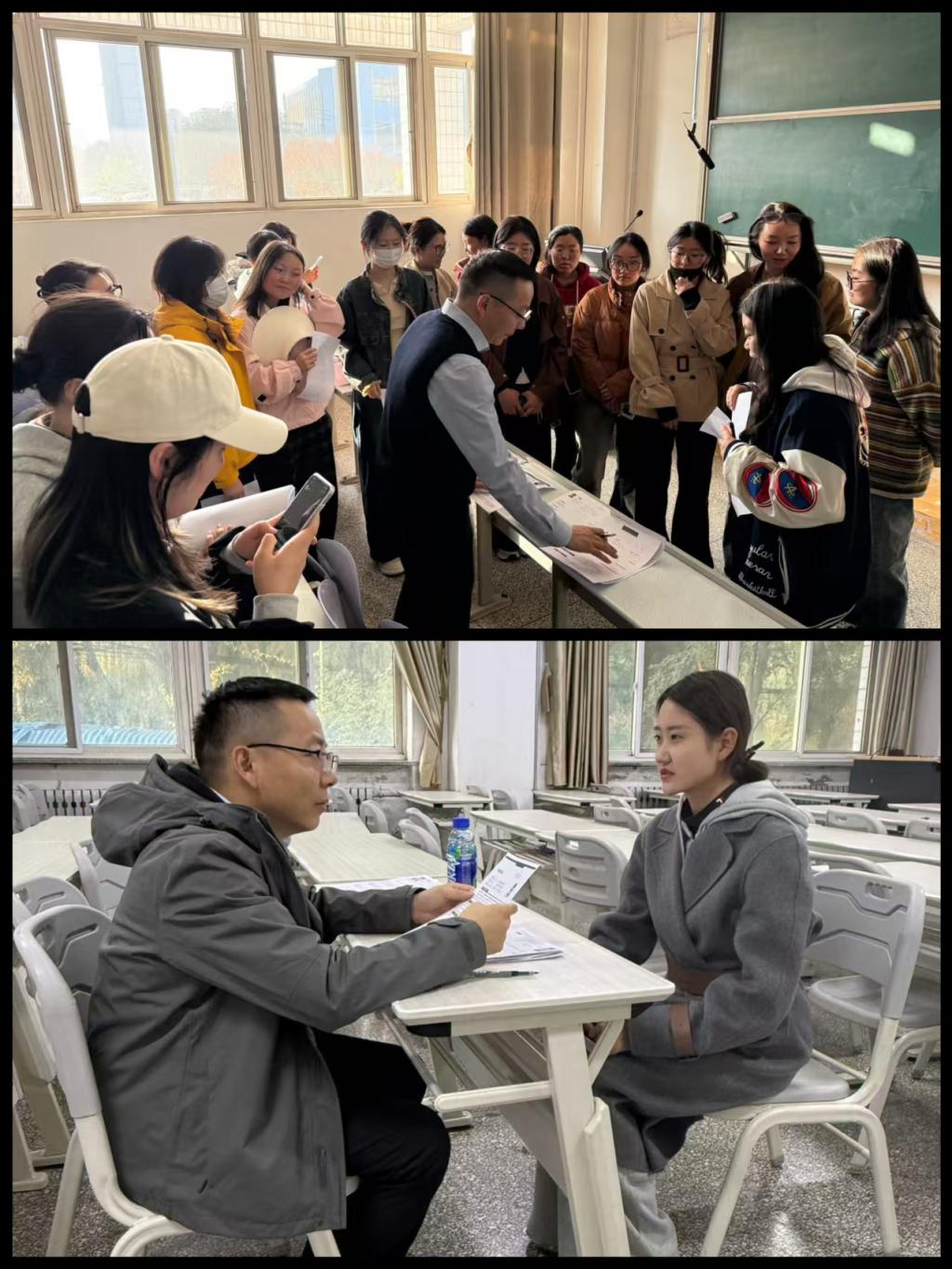 本次招聘会设置“面试直通车”环节,唐小林围绕专业能力、实践经历等与学生一对一沟通,既严格筛选适配人才,也提供求职指导。
