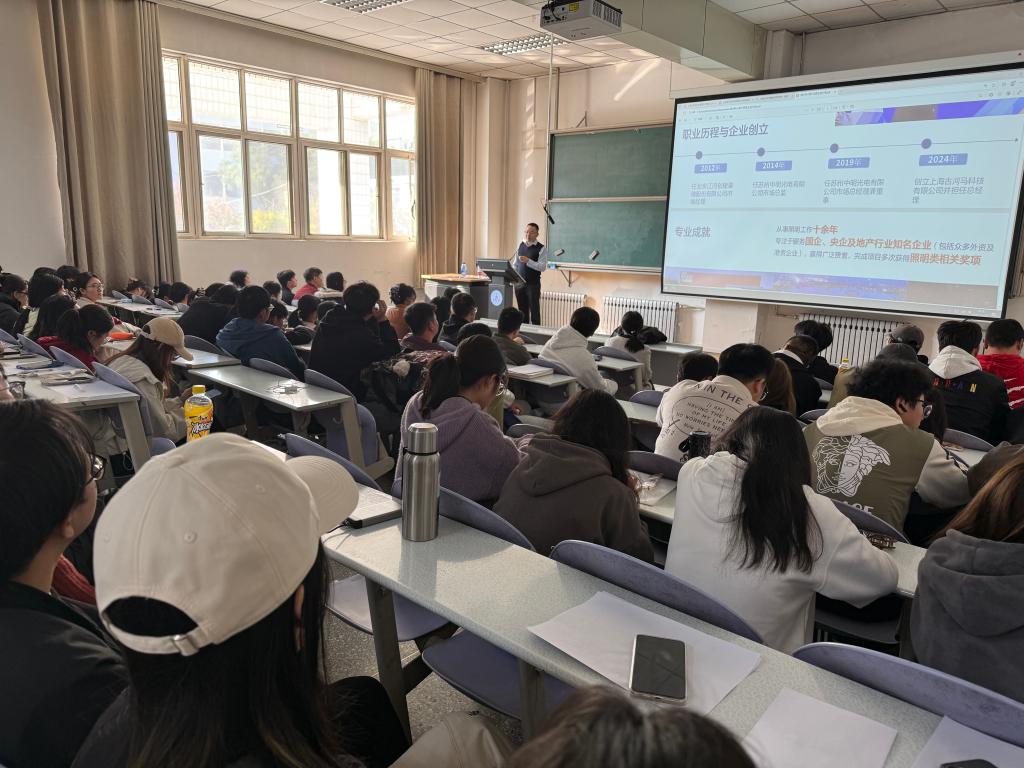 活动现场,唐小林以“校友+企业家”的双重身份,结合行业经验介绍了企业的发展历程、核心业务及企业文化。作为拥有城市及道路照明施工一级资质的专业灯光系统集成服务商,该企业所需的市场营销助理、助理方案设计师、投标专员、秘书等岗位,与学院人才培养方向高度匹配,引发学生广泛关注。
