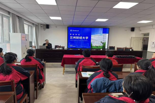 座谈会后,深入两校高三班级,开展了“财经素养进百校”宣讲教育活动。王圣副院长以“欢迎加入兰财大家庭”为主题,围绕学校历史沿革与成就、学科专业特色优势和商务传媒学院概况、专业特色、毕业生考研情况等方面,分别向两所高中的二百余名学生进行了生动系统的宣讲,并就财经素养、招生录取、志愿选择等与学生进行了互动交流。