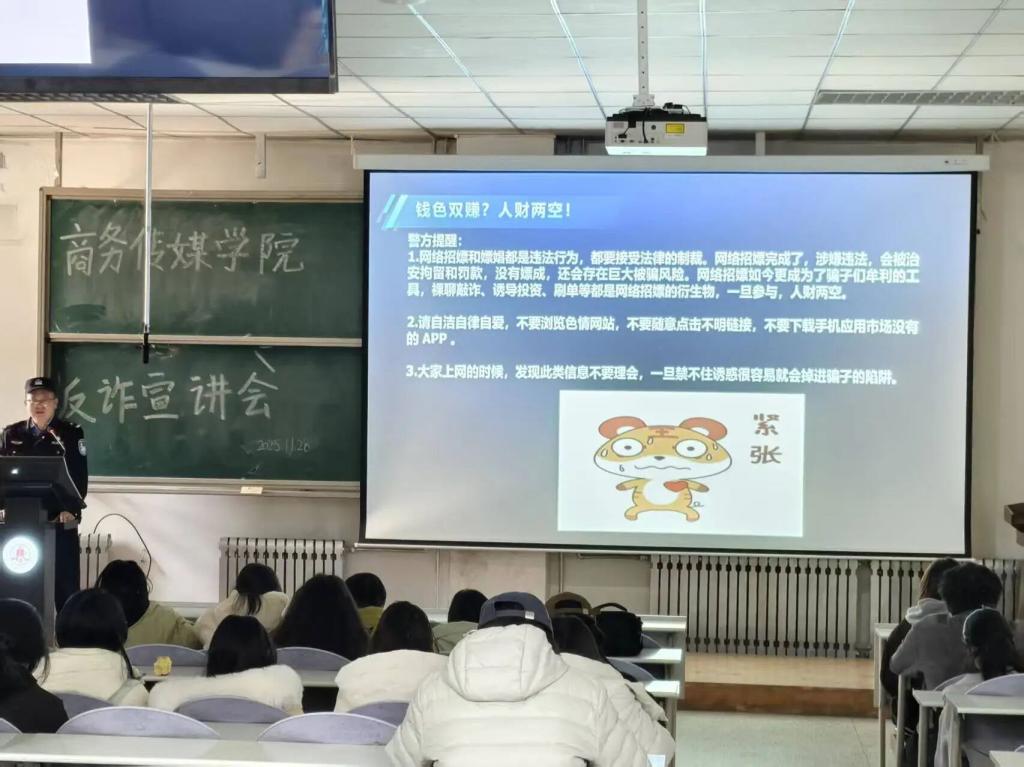 本次反诈宣讲会,以“精准破局、实战防护”为导向,帮助同学们认清诈骗套路、掌握防护技能。学院将持续关注同学们的安全需求,以更贴心的服务、更实用的活动,为商传学子的校园生活与财产安全保驾护航!